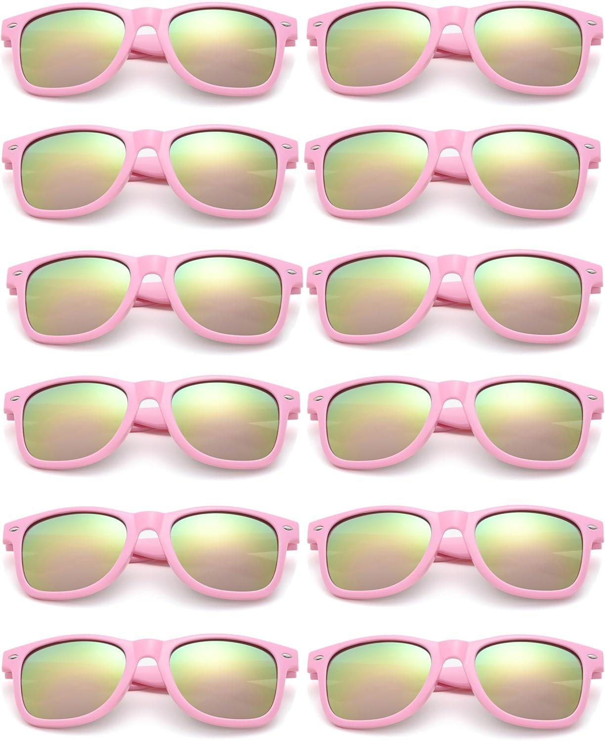The 12-Pack Pink Wayfarer Sunglasses with Green Mirror lenses offer a stylish and vibrant accessory for any occasion. Designed for both comfort and durability, these classic sunglasses provide UV protection while making a bold fashion statement. Perfect for parties, events, or promotional giveaways, they combine functionality with a trendy look.
