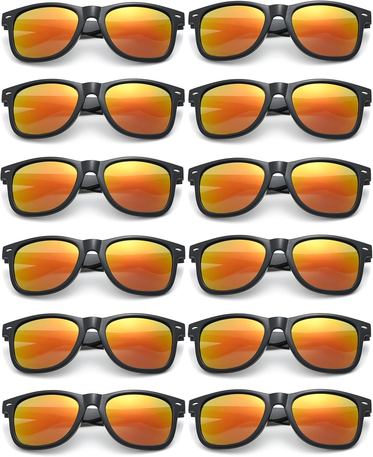 The 12-Pack Wayfarer Sunglasses feature a sleek black frame paired with stylish orange mirrored lenses, perfect for any occasion. Designed for both comfort and durability, these sunglasses provide excellent UV protection while enhancing your look. Ideal for promotions or group outings, this set offers great value at $239.69.