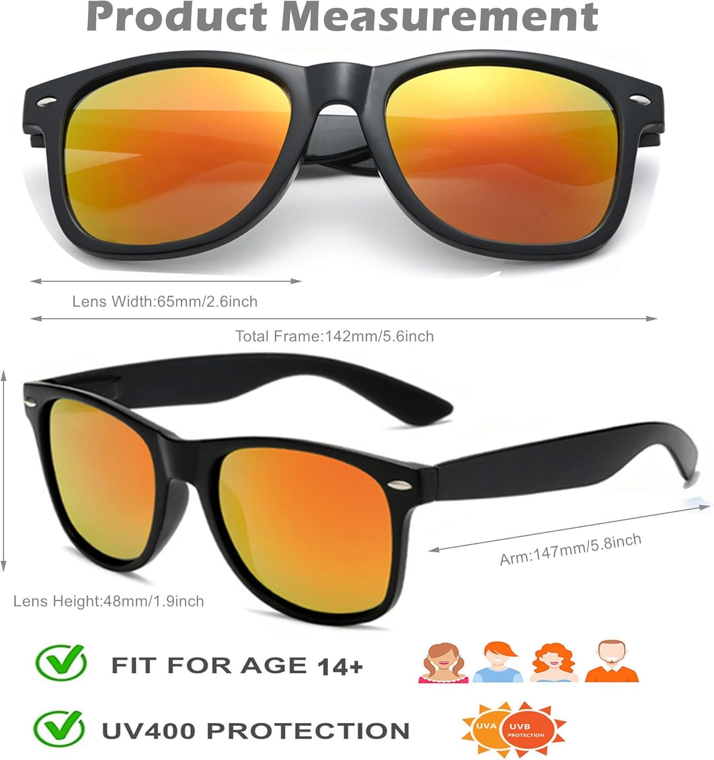 Introducing the 12-Pack Wayfarer Sunglasses in a stylish black frame with striking orange mirrored lenses, perfect for those who appreciate both fashion and functionality. These sunglasses embody a classic design that suits a variety of face shapes, making them an ideal accessory for any occasion. Each pack includes twelve pairs, allowing for versatility whether you’re stocking up for an event, gifting to friends, or simply enhancing your own collection. The durable black frames provide a sleek, modern look while ensuring comfort and stability during wear. The vibrant orange mirrored lenses not only offer a unique aesthetic but also provide excellent UV protection, shielding your eyes from harmful rays. Whether at the beach, a picnic, or a casual day out, these sunglasses are designed to enhance your style while keeping your vision clear and protected. Invest in this 12-pack to elevate your accessory game and enjoy the perfect combination of practicality and trendiness.