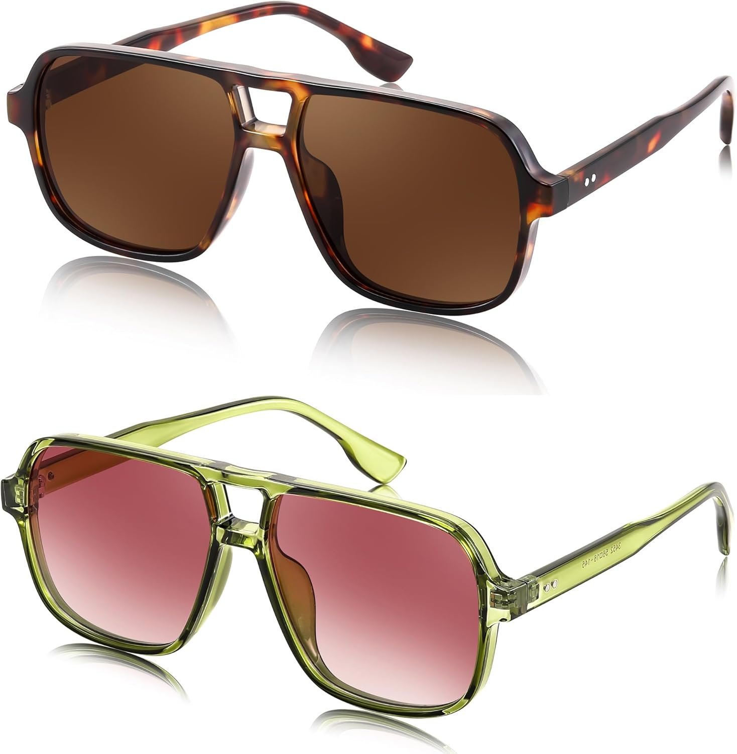 Elevate your style with this 2-Pack of Aviator Sunglasses in Tortoise Brown and Green Pink. These classic aviators combine a timeless design with trendy colors, offering both UV protection and comfort. Perfect for any occasion, they provide a chic accessory that complements a variety of outfits while ensuring you look effortlessly stylish.