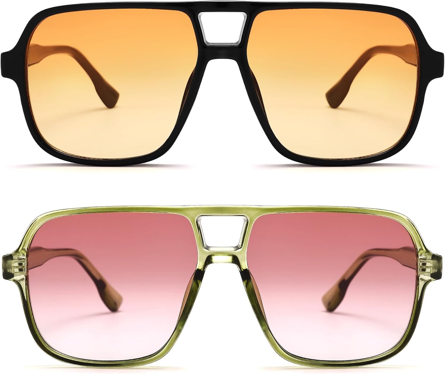Elevate your style with this 2-Pack of Oversized Square Sunglasses in Black and Green. Designed for a bold look, these sunglasses offer ample coverage while providing UV protection. Perfect for any occasion, they effortlessly combine fashion and function, making them a must-have accessory for your wardrobe.