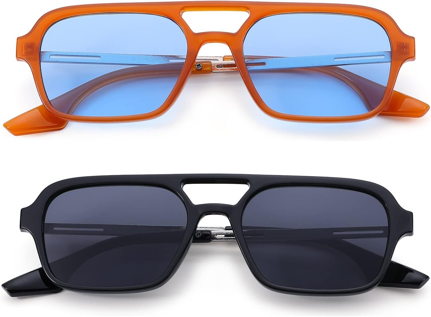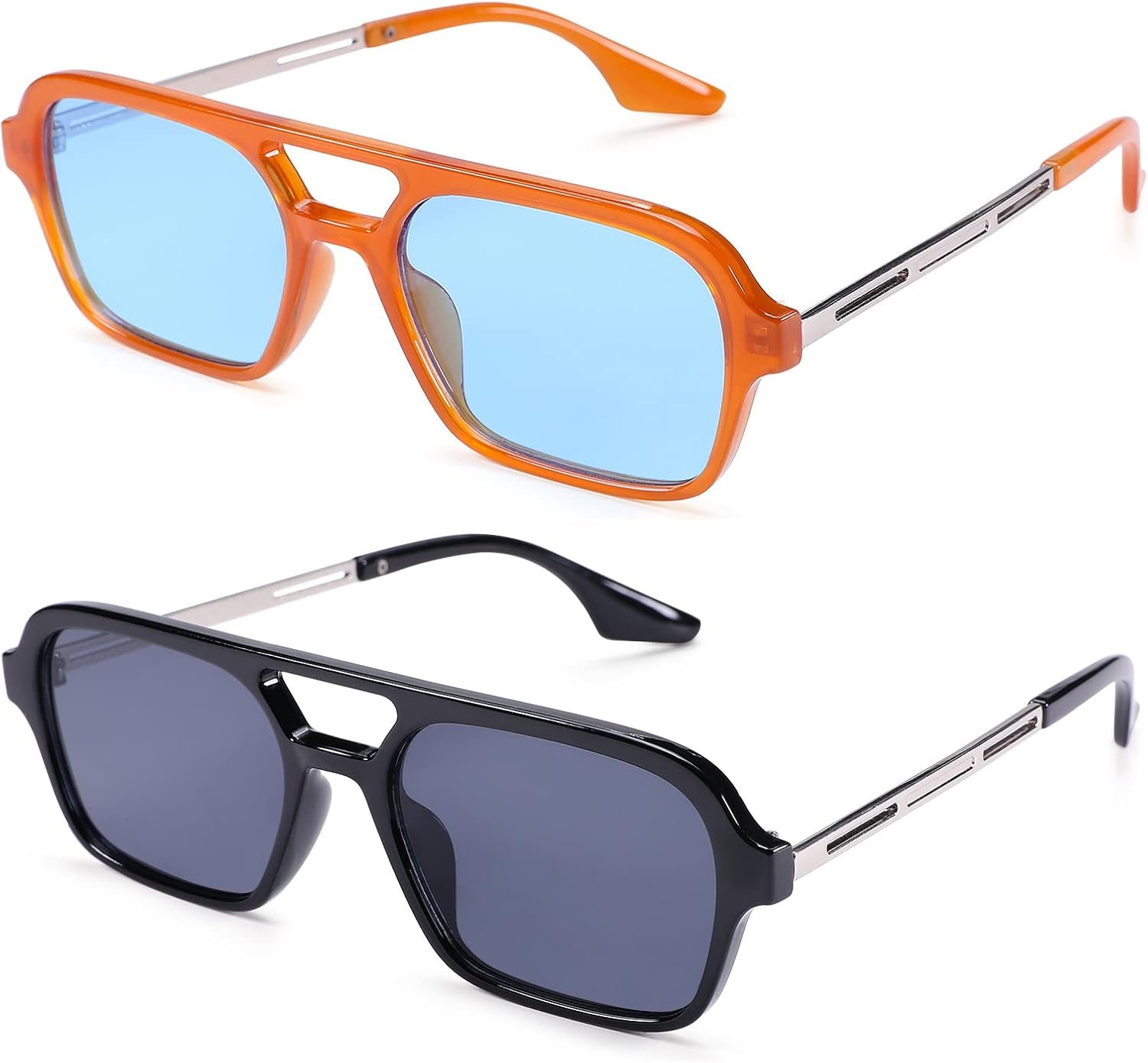 Introducing the 2-Pack Rectangle Sunglasses in striking orange and black, designed for those who seek both style and functionality. These sunglasses feature a contemporary rectangular frame that complements a variety of face shapes, making them a versatile addition to your accessory collection. The bold orange and classic black color combination ensures you stand out while also maintaining a sophisticated look. Crafted with high-quality materials, these sunglasses are lightweight and comfortable for all-day wear. The lenses provide essential UV protection, safeguarding your eyes from harmful rays while enhancing visibility. Perfect for outdoor activities, casual outings, or simply lounging by the pool, this two-pack offers excellent value, allowing you to switch up your look effortlessly. Whether you choose to wear them for fashion or function, the 2-Pack Rectangle Sunglasses are an essential accessory for the modern individual who values both aesthetics and practicality. Upgrade your eyewear collection today with this stylish duo.