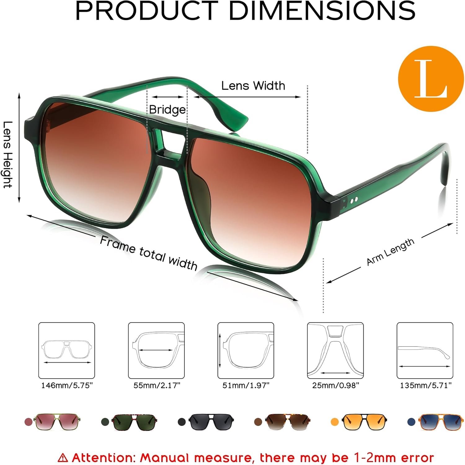 Introducing the Green Oversized Square Sunglasses featuring a stylish brown gradient lens. These sunglasses are designed to make a bold fashion statement while providing optimal sun protection. The oversized square frame offers a contemporary look that enhances any outfit, whether you’re dressing up for a special occasion or enjoying a casual day out. Crafted with high-quality materials, these sunglasses are not only durable but also lightweight, ensuring comfort during extended wear. The brown gradient lenses not only add a touch of sophistication but also effectively reduce glare and provide excellent visibility in bright conditions. Ideal for fashion-forward individuals, these sunglasses combine functionality with a chic aesthetic, making them a must-have accessory for your collection. Elevate your eyewear game with the Green Oversized Square Sunglasses and enjoy both style and comfort every time you step outside.