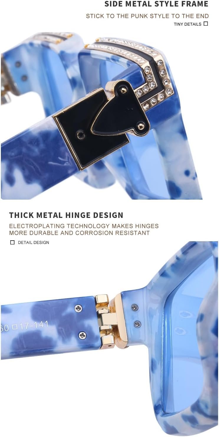 Elevate your style with our Oversized Square Sunglasses featuring a striking blue marble frame. Designed for a bold statement, these sunglasses offer ample coverage and a contemporary aesthetic. Perfect for any occasion, they combine fashion and function, ensuring you look chic while protecting your eyes from the sun’s rays.
