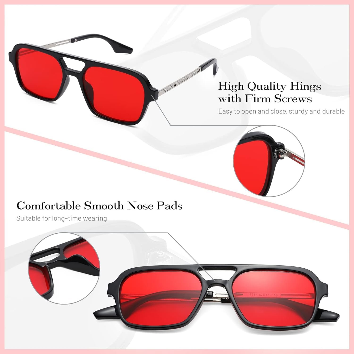 Introducing the Rectangle Unisex Sunglasses featuring a striking black frame complemented by vibrant red lenses, designed to elevate your style while providing essential eye protection. These sunglasses embody a modern aesthetic, making them suitable for both men and women who appreciate bold fashion choices. The rectangle shape not only enhances the facial structure but also offers a timeless look that can seamlessly transition from casual outings to more formal occasions. Crafted with high-quality materials, the durable black frame ensures longevity while maintaining comfort for extended wear. The red lenses provide not only a unique pop of color but also effective UV protection, shielding your eyes from harmful sun rays. Whether you’re lounging by the beach, driving on a sunny day, or attending outdoor events, these sunglasses are the perfect accessory to complete your ensemble. Step out in confidence and make a statement with these stylish Rectangle Unisex Sunglasses.