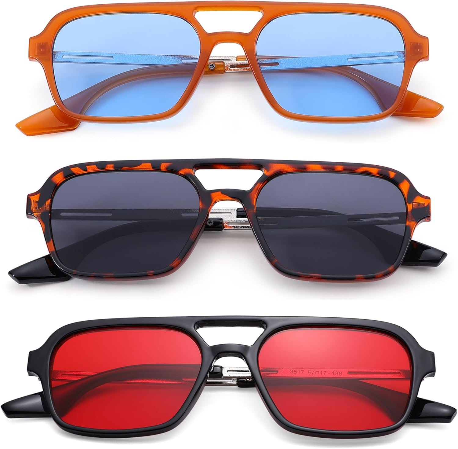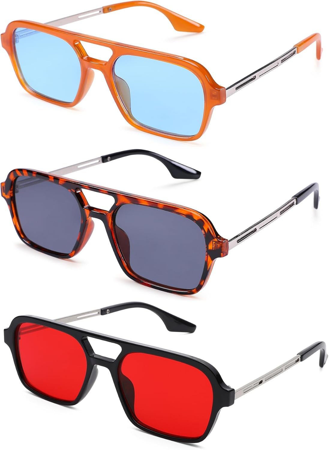 Elevate your everyday look with this three pack of rectangle sunglasses featuring orange, tortoise, and black frames. The cohesive rectangular silhouette provides a clean, modern profile, while the curated color mix delivers options for bold statements, timeless texture, and classic minimalism. The orange frame brings vibrant energy, the tortoise adds refined character, and the black offers a sleek, understated finish, making it easy to coordinate with a wide range of outfits. Keep one pair at home, one at work, and one on the go to simplify your routine without sacrificing style. Consistent shape across all three pairs allows seamless rotation while maintaining a polished aesthetic. Whether you prefer to switch them daily or select a pair to complement specific ensembles, this set offers dependable versatility in a convenient bundle tailored for everyday wear and effortless coordination.