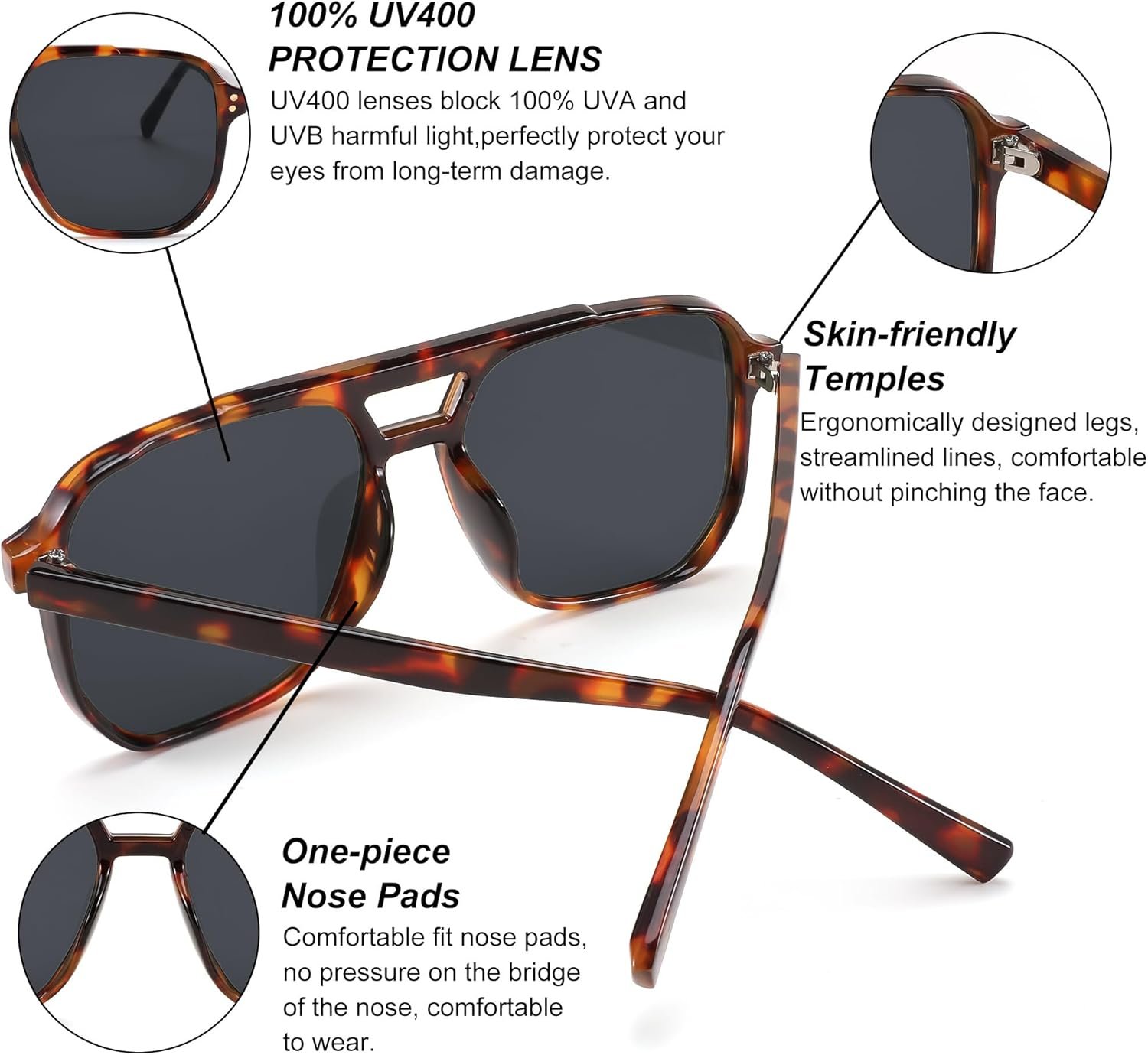 Unisex Oversized Square Sunglasses in a classic tortoise frame offer a bold, modern silhouette with gender-neutral styling, providing a versatile and refined accessory suitable for contemporary wardrobes and everyday wear.
