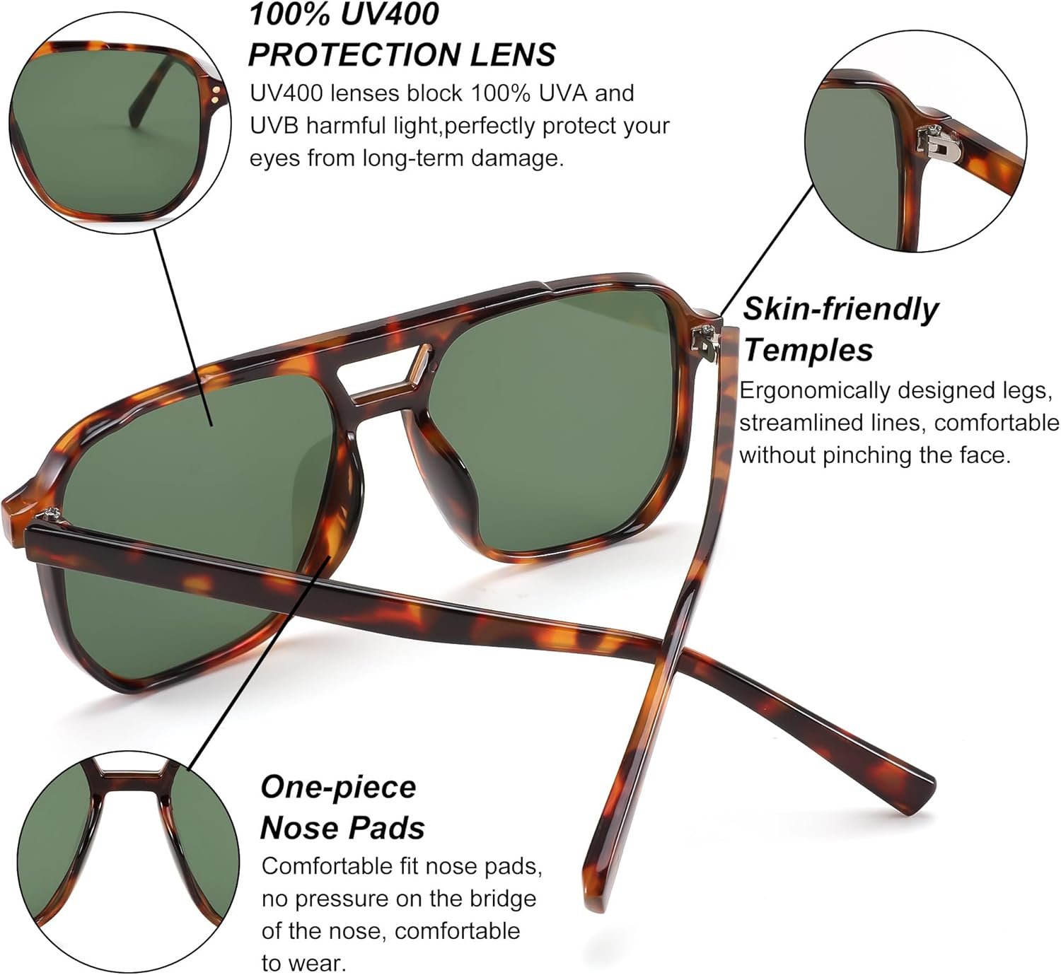 Tortoise Square Sunglasses feature a classic tortoise frame with a defined square silhouette and green lenses, presented in a versatile unisex design.