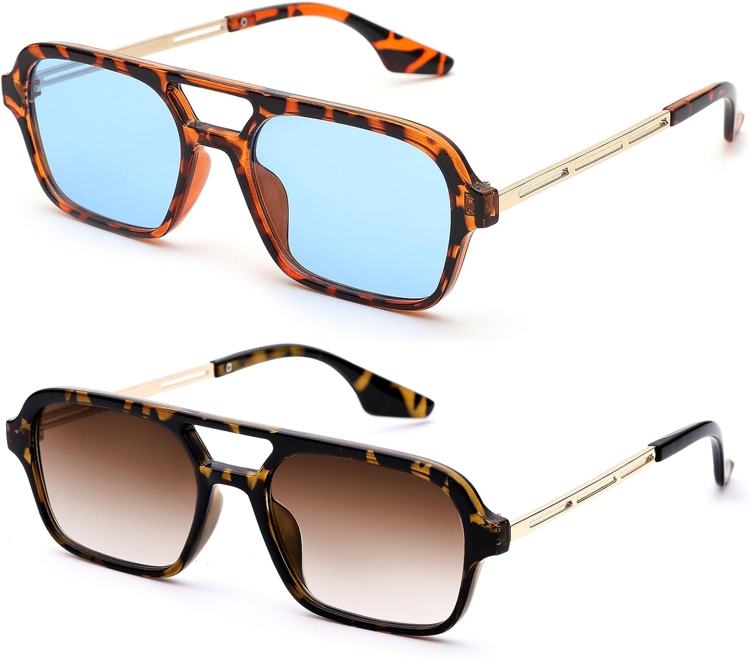 Two-pack of rectangle sunglasses in tortoise and a blue-and-brown finish, providing versatile, contemporary eyewear suitable for everyday wear.