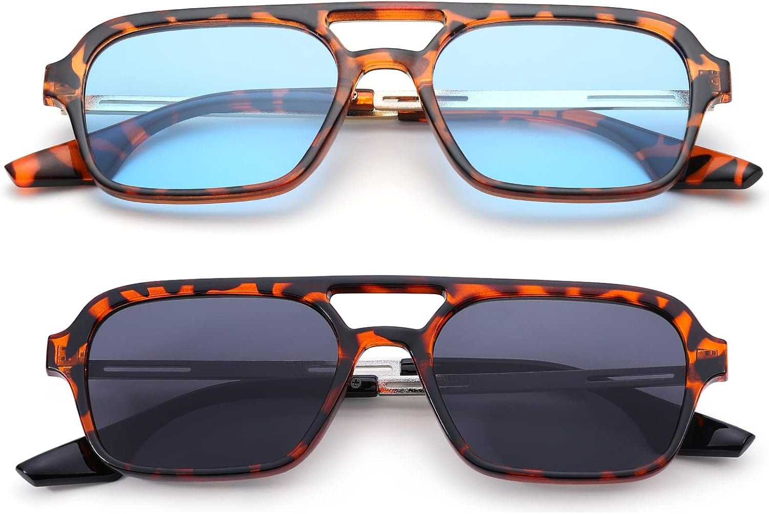 Discover a refined two pack of rectangle sunglasses in tortoise blue and smoke colorways, delivering a clean modern look for everyday wear and easy pairing with any wardrobe while offering convenient value in one versatile set.