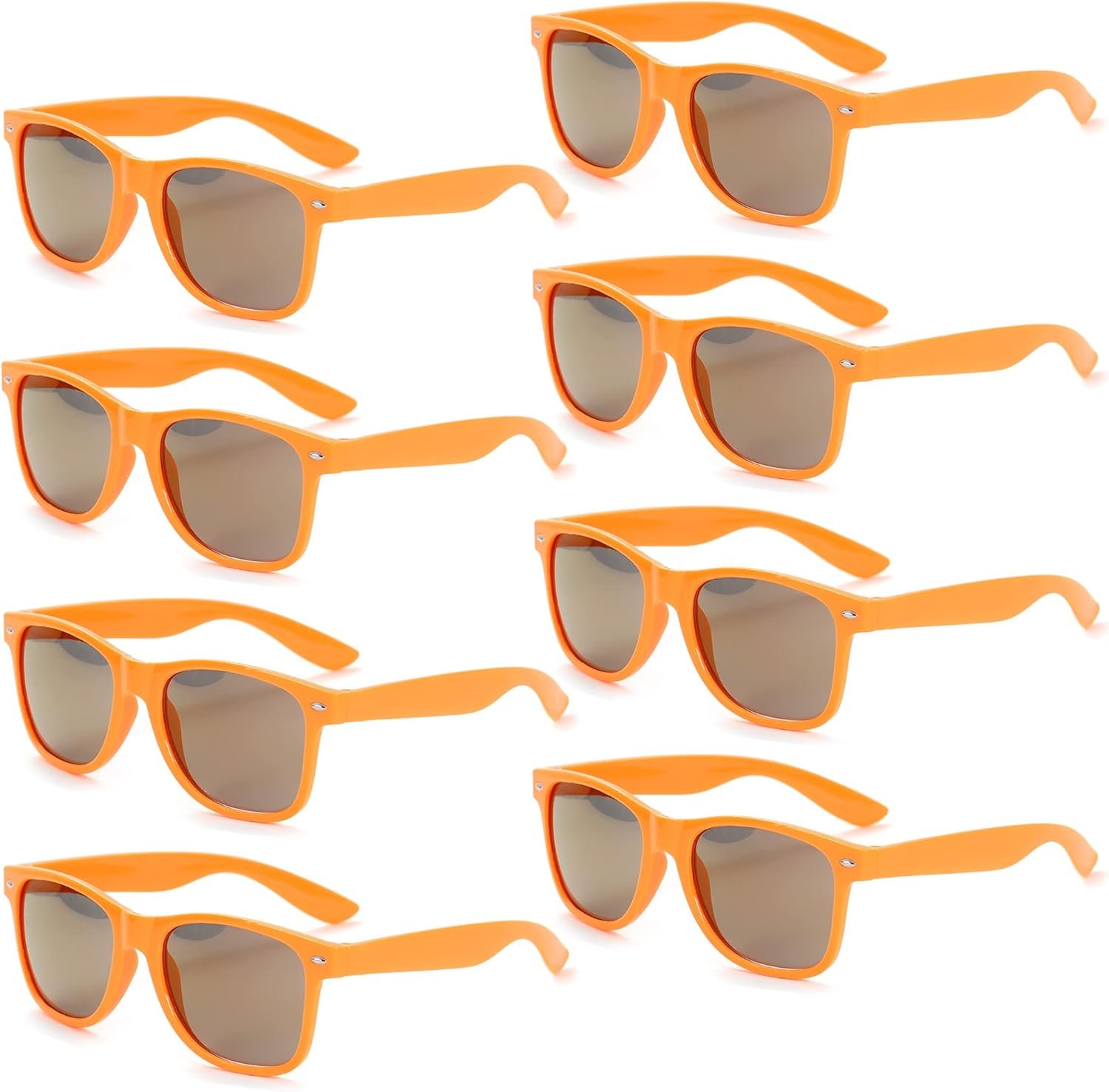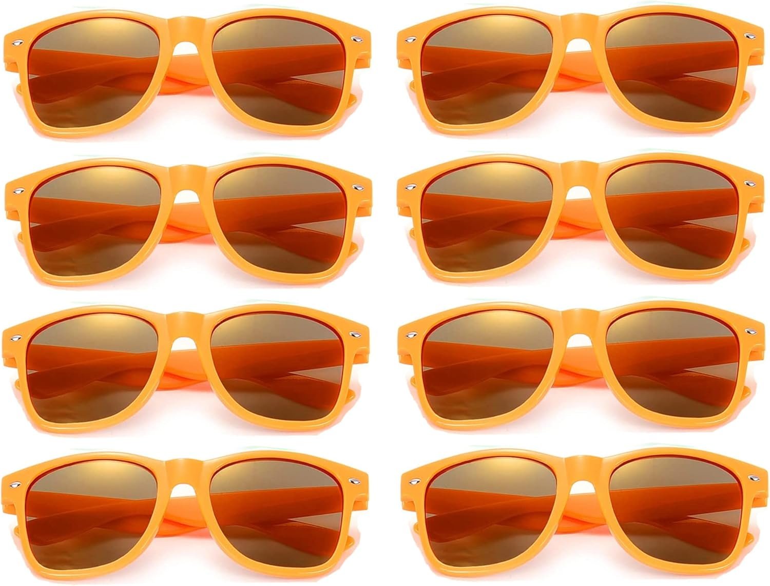 This 10-pack of orange wayfarer sunglasses features classic wayfarer frames in vibrant orange paired with brown lenses. Each unit in the multi-pack presents a uniform, contemporary silhouette and consistent lens coloration, simplifying selection for group purchases. The convenient ten-unit configuration is suited to coordinated events, promotional distribution, team use, or retail merchandising where matched accessories are required. The design emphasizes a clean, recognizable profile and straightforward styling across the entire set.