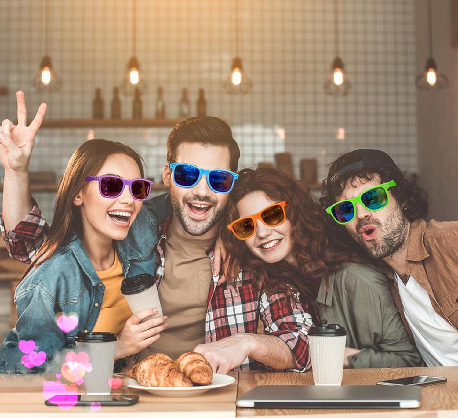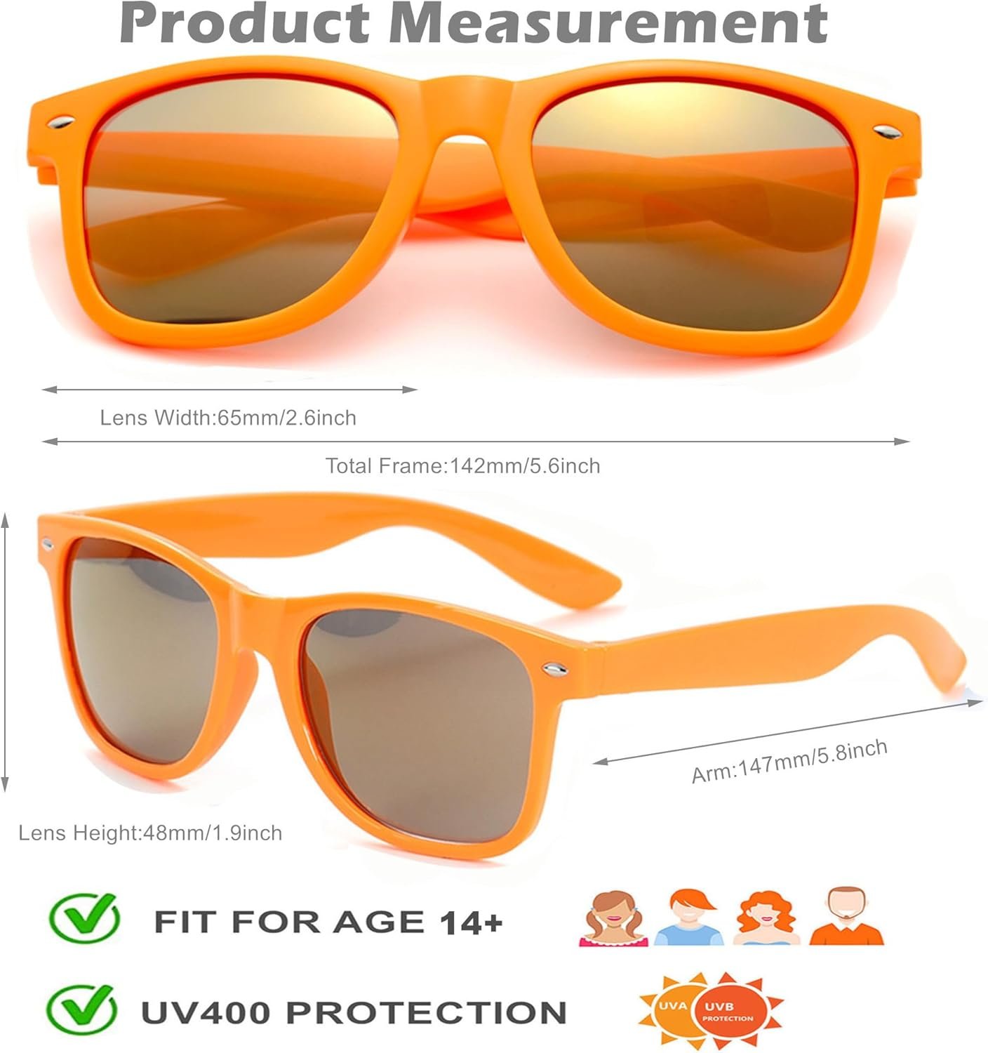 A 10 pack of orange wayfarer sunglasses with brown lenses offering classic style and vibrant color. Convenient multipack ideal for events, retail or group use.