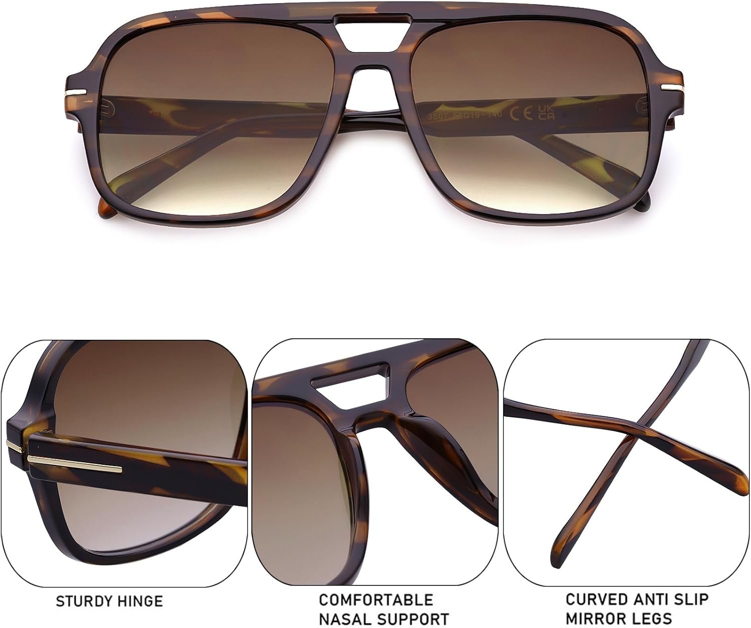 Introducing the Tortoise Oversized Square Sunglasses in a captivating brown gradient, a perfect accessory for those who wish to elevate their style while ensuring optimal eye protection. These sunglasses feature a bold oversized square frame that exudes a contemporary aesthetic, making them an ideal choice for fashion-forward individuals. The rich tortoise shell pattern adds a touch of sophistication and uniqueness, allowing you to stand out effortlessly. The brown gradient lenses not only enhance visual comfort but also provide excellent UV protection, shielding your eyes from harmful rays during sunny days. Designed for versatility, these sunglasses can complement a variety of outfits, from casual ensembles to chic summer dresses. Crafted with durability in mind, they promise longevity while ensuring a comfortable fit for all-day wear. Elevate your eyewear collection with these stylish Tortoise Oversized Square Sunglasses and embrace a blend of functionality and fashion.