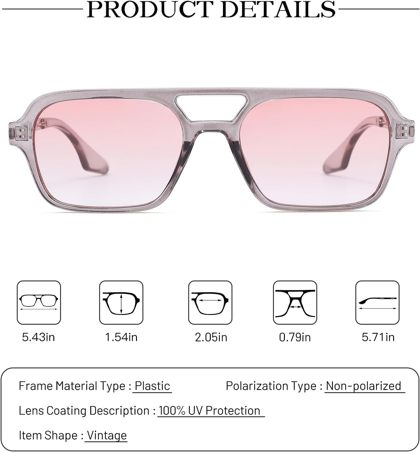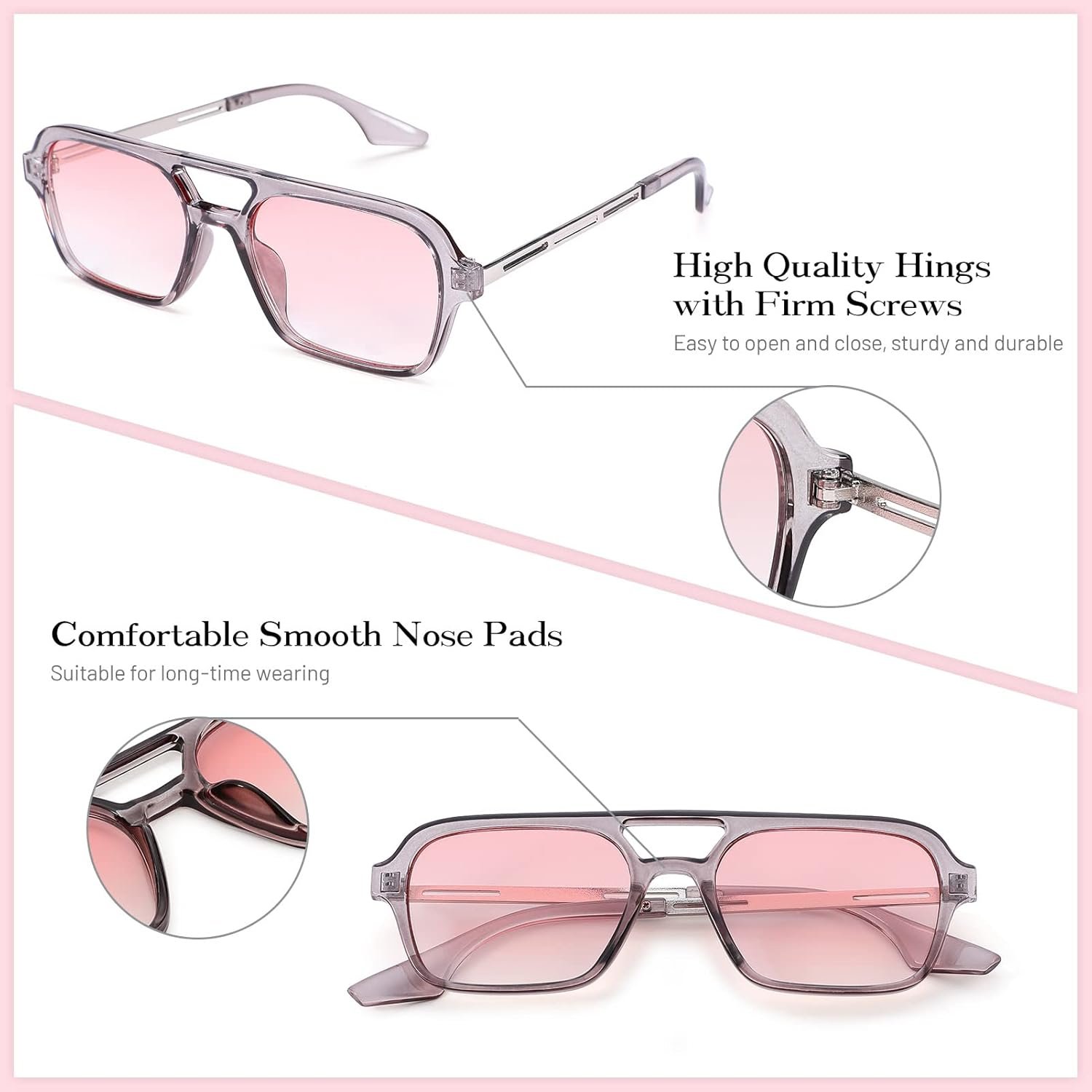 Introducing the Translucent Purple Square Sunglasses with Pink Gradient lenses, a stylish accessory that effortlessly combines fashion and function. These sunglasses feature a modern square frame crafted from high-quality, lightweight materials, ensuring comfort during extended wear. The translucent purple hue adds a playful yet sophisticated touch, making them a perfect statement piece for any outfit. The pink gradient lenses not only provide excellent UV protection but also enhance visual clarity, allowing you to enjoy sunny days with confidence. Ideal for both casual outings and chic events, these sunglasses are designed to elevate your look while offering practicality. Whether you’re lounging by the pool or exploring the city, the Translucent Purple Square Sunglasses are a must-have addition to your accessory collection. Embrace a trendy aesthetic while protecting your eyes with this exquisite pair of sunglasses, designed for those who appreciate quality and style.
